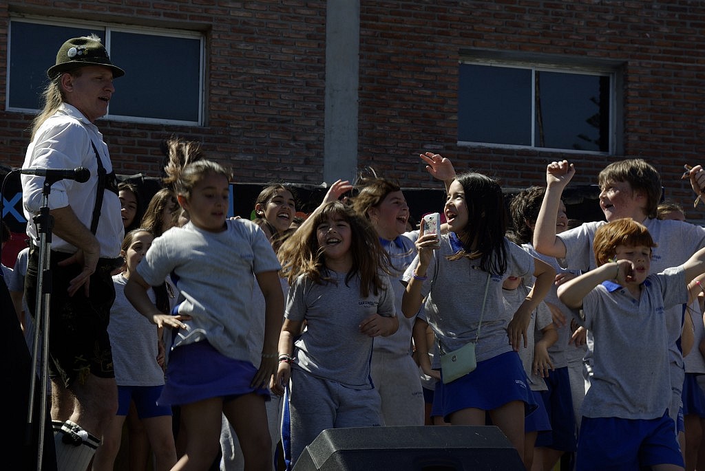 Alles begann einigermaßen chaotisch, da für Generalproben keine Zeit war. Es musste halt einfach klappen. Nach Dekoration und einigem hin und her mit der Technik konnte es dann mit offiziellem Fahneneinlauf losgehen. Von Drei Chinesen mit dem Kontrabass über den Haustierrap bis hin zu einer wunderbaren Darbietung der 1. Klasse von Dornröschen wurde ein breites Spektrum deutscher Kultur geboten. Außerdem traten eine „Wolgadeutsche Tanzgruppe“ auf sowie ein Herr in Lederhosen, der mit beeindruckend vielseitiger Stimme Schlager, italienische Arien und brasilianische DiscoHits vortrug, bis schließlich die Schüler, Eltern und Lehrer in Polonaise die Bühne eroberten! Das sagenumwobene „Chukrut und Weisstwurt“, was sich als Sauerkraut mit Weißwurst herausstellte, schmeckte übrigens auch gut!