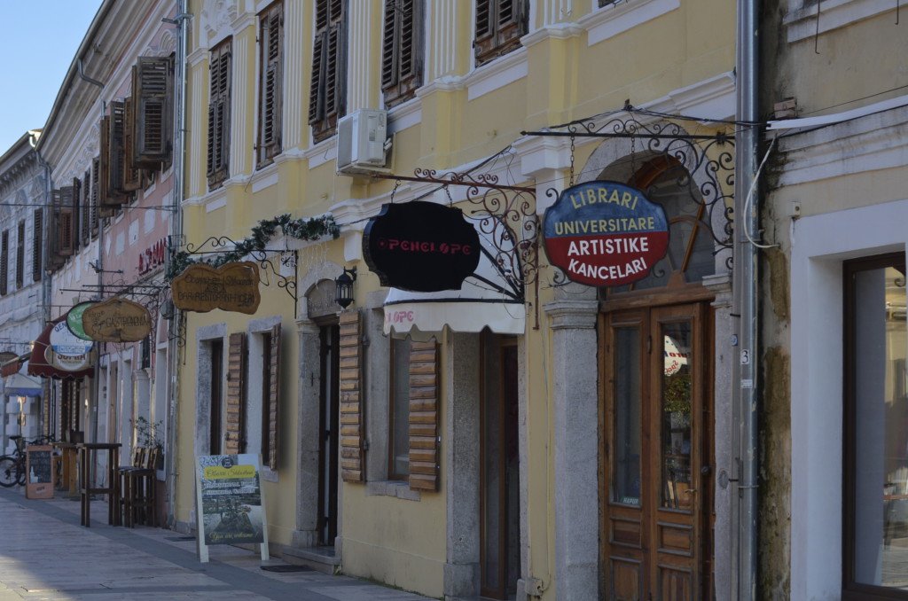 In Shkodra hält der Bus an einem großen, überfüllten Kreisverkehr. Ich verabschiede mich mit „Mirupafshim“ von dem alten Mann neben mir. Er nickt lächend als Antwort und hat wohl jeglichen Versuch eine Kommunikation zu starten schon längst aufgegeben. Mein Anschlussbus fährt erst in einer Stunde und ich nutze die Zeit und laufe die Fußgängerpassage in den warmen Sonnenstrahlen entlang. Die Läden, Cafes und Restaurants sind zu dieser Jahreszeit noch geschlossen. Mehrere Bettler halten sich davor auf. Ein Mann sitzt vor einem der einzigen geöffneten Cafes mit einer Bierflasche auf dem Tisch. Er ruft mir etwas auf albanisch zu und deutet auf sein Bier. Ich falle wohl mit meiner bunten Ski-Jacke und den vollen Taschen auf. Den Mann ignorierend laufe ich weiter, setzte mich auf eine Bank in der Sonne und esse eine Kleinigkeit. Frauen und ältere Leute auf Fahrrädern fahren an mir vorbei. Straßenhunde schlafen in den letzten Sonnenstrahlen.