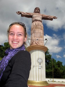 Als ich dann also mit Karte und Informationen ausgestattet war, bin ich losgezogen um die Stadt zu erkunden! Und das hat erstaunlich gut funktioniert 😉 Als erstes bin ich zur großen Jesus Statue gefahren (auch mit einem kleinen Bus, weil es nur bergauf ging und ich das nieeee im leben hätte laufen können!) die über der Stadt auf einem Plateau steht….die hat mich so ein bisschen an die in Rio erinnert, nur halt nicht so groß… (man muss dazu sagen, ich war noch nicht in Rio und hab deshalb keinen Vergleich…und fand dementsprechend diese Statue echt groß! ) Von da oben hatte ich einen wunderschönen Ausblick über die ganze Stadt! 🙂