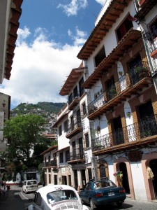 Taxco ist eine kleines Städtchen (ein Pueblo magico, also ein magisches Dorf, das wegen seines typischen und gepflegten Characters als besonders ehenswert ausgezeichnet wurde) und liegt im Norden des Bundesstaates Guerrero in der Sierra Madre del Sur und hat ca. 50.000 Einwohner. In Taxco am Bus Bahnhof stand ich dann erstmal ein wenig blöd herum, weil ich keine Karte und nix hatte, nur eine Liste mit Dingen die ich gerne sehen wollte….aber ich dachte mir, alles was wichtig und schön ist, ist hier in Mexico immer am Zocalo gebaut, und da jede Stadt ein Zocalo hat, hab ich einfach mehrer Busse angehalten und gefragt ob die zum Zocalo fahren…nach dem vierten hatte ich dann Glück und ich wurde zum Zocalo gefahren 🙂 Am Zocalo dann, liefen dort tausende von Touristen Guides herum, die einem !Kostenlos! Karten von der Stadt und Infos zum Sight Seeing gegeben haben, und das sogar auf englisch!!!! Wohooo, war ich begeistert! 😀