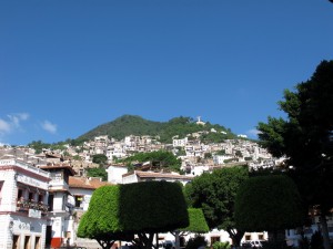 Taxco ist eine kleines Städtchen (ein Pueblo magico, also ein magisches Dorf, das wegen seines typischen und gepflegten Characters als besonders ehenswert ausgezeichnet wurde) und liegt im Norden des Bundesstaates Guerrero in der Sierra Madre del Sur und hat ca. 50.000 Einwohner. In Taxco am Bus Bahnhof stand ich dann erstmal ein wenig blöd herum, weil ich keine Karte und nix hatte, nur eine Liste mit Dingen die ich gerne sehen wollte….aber ich dachte mir, alles was wichtig und schön ist, ist hier in Mexico immer am Zocalo gebaut, und da jede Stadt ein Zocalo hat, hab ich einfach mehrer Busse angehalten und gefragt ob die zum Zocalo fahren…nach dem vierten hatte ich dann Glück und ich wurde zum Zocalo gefahren 🙂 Am Zocalo dann, liefen dort tausende von Touristen Guides herum, die einem !Kostenlos! Karten von der Stadt und Infos zum Sight Seeing gegeben haben, und das sogar auf englisch!!!! Wohooo, war ich begeistert! 😀