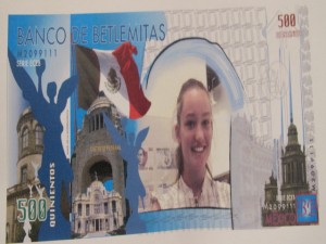 Und dann gings auf zum „Museo de la economía“ wo man sich sein eingenen Geldschein mit dem eigenen, höchst entzückenden Gesicht drauf drucken lassen konnte! Währe es nicht so teuer gewesen (wobei teuer hier ja echt immer relativ ist!) wären Janine und Ich bestimmt in Massenproduktion getreten 😛 man stelle sich nur mal die Gesichter der leute vor, wenn man ihnen einen geldschein mit meinem Gesicht geben würde….boa die wären bestimmt höchst entzückt 😉