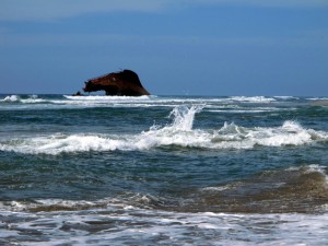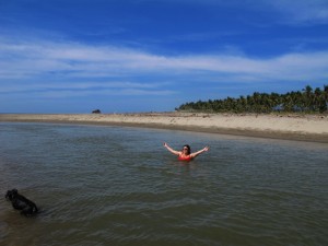 nach getaner Arbeit, geht’s auf zum Strandspaziergang und zum gestrandeten Schiff von Playa Azul (ein Schiff Wrack direkt vor der küste, bei Ebbe kann man da angeblich auch zufuß hinlaufen….naja bei uns war Flut!) ….. aber wie auch im echten leben, war der Weg nicht nur immer angenehm und ruhig….so mussten wir zum beispiel auch einen „reißenden“ Fluss durchqueren….da wo nämlich der See ins meer floss und den einen Strandteil von dem anderem trennte 😀 aber wir habens überlebt, und es war sogar auch ganz lustig, wie sonst auch immer 😛 😛 😛