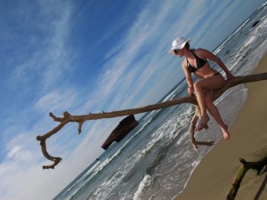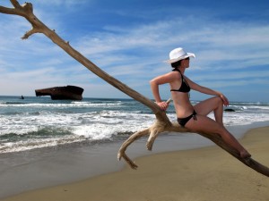 Und am Schiffswrack war das interessanteste eigentlich gar nicht das gestrandete Schiff, sondern vielmehr ein alter baumstamm….oder so was ähnliches, was herrlich zum Fotoshoot und allerlei albernheiten einlud! 😉 Ja ja ja, die Touristen halt 😀