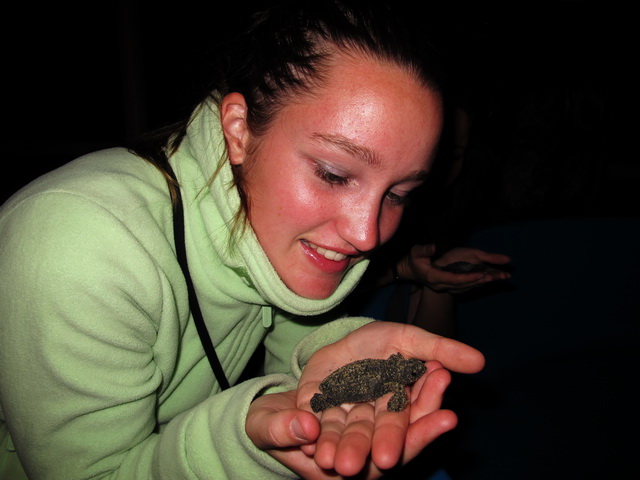 Die Eier haben wir dann ins Camp gebracht, wo schon ganz viele andere Eier stationiert und unter fachmännischer Aufsicht eingegraben wurden (das Loch darf nämlich nur einen Unterarm lang tief sein, sonst kommen die babies nicht raus!). Und anschließnd durften wir noch die bereits geschlüpften babies anschauen, die dann am nächsten morgen freigelassen werden. Das waren insgesammt mehr als 200 Stück!!! 😀 man stell sich mal vor wie voll fett nachhaltig diese Projekt ist, was die Männer alle ehrenamtlich machen!!! Find ich echt super!!! Und die geben auch Infoveranstaltungen für Schulen und so….wäre unsere schule nicht so weit weg würd ich da glatt mit meinem Kindergarten hinfahren wollen!!!! 🙂