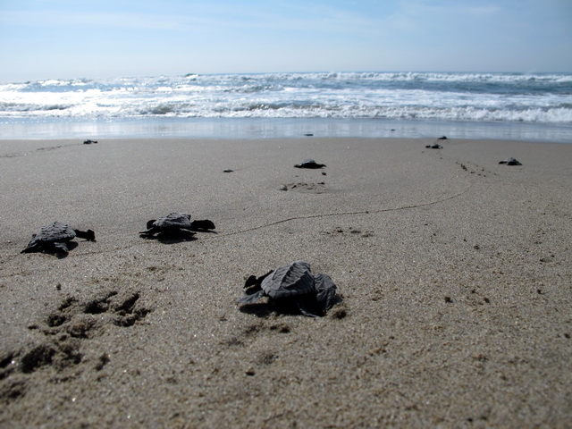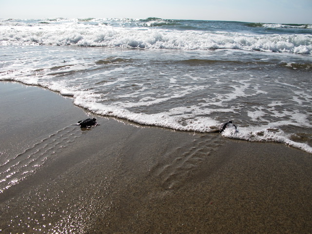 Am nächsten Morgen hieß es dann aber auch schon wieder „Rettet die Schildkröten“ weil jetzt mussten die über Nacht geschlüpften Schildkröten babies freigelassen werden, und auf ihre Reise ins große weite Meer entlassen werden….ach ne wie süß! 🙂 Und wieder hatten wir unsere Spezial Führung mit unserem Camping Schildkröten Guid, voll gut! Wir durften dann zu 4 ca. über 100 Schildkröten freilassen!!!! Und jetzt das traurige: von den 100 Schilkröten hat der guid gesagt, werden wahrscheinlich nur 20 Überleben….die anderen werden von den anderen Tieren im Meer gefressen 🙁 voll traurig! Aber naja, deshalb retten wir ja immer so viele, und nicht nur ein paar! 🙂 Und los geht die reise für unsere kleinen Schützlinge!