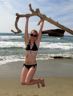Und am Schiffswrack war das interessanteste eigentlich gar nicht das gestrandete Schiff, sondern vielmehr ein alter baumstamm….oder so was ähnliches, was herrlich zum Fotoshoot und allerlei albernheiten einlud! 😉 Ja ja ja, die Touristen halt 😀