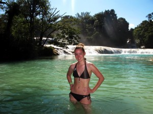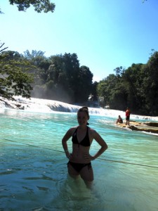 Dann ging es weiter nach Agua Azul, und ich muss sagen der Wasserfall macht seinem namen alle Ehre! 😀 Da war es echt megaaaaaa schön, und zum Glück hatten wir fast vier Stunden dort zeit! Nachdem ich gnügend Fotos gemacht hatte, hab ich mich schnell umgezogen, und bin ins kühle Nass gehüpft 😉 was für eine schöne Erfrischung!!!! Aber echt ziemlich kalt muss ich sagen! Man musste sich die ganze Zeit bewegen, so mit vor sich hindümpeln, ist da nicht! Aber das Wasser war einfach herrlich, total klar und türkis, ein Traum!!!! 🙂