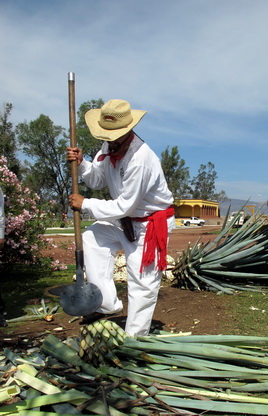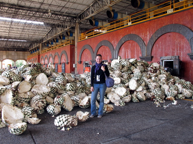 Dann, nach 1,5 Stunden sind wir in Amitlan angekommen, einem kleinen Dorf, in dem die Destilerie „Casa Heradura“ oder so ähllich ist, wo wir eine Führung bekommen haben. Das war echt interessant, und wer kann schon sagen, er hat schon mal gekochte Agave ausgelutscht?! 😀 naja so doll hat die nicht geschmeckt, eher ziemlich wiederlich, aber die Amis auf der Tour fanden es mal wieder „So amazing!“ 😛 nach der Tour und jeder mege Infos über den Tequila Herstellungsprozess haben wir dann in einer großen Halle mexikanisch gegessen (Buffet) und dannach wurde mal wieder getanzt, bei mariachi musik! Schließlich sind wir ja in México! 😉