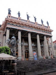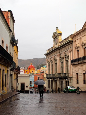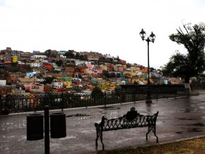 Freitag nacht gings mal wieder zu gewohnter Stunde los, nämlich um 12 uhr nachts, nach Guanajuato…..mit dem Ergebnis das ich schon um 5 Uhr morgens da ankam und erstmal weiter in der zugigen Busbahnhofshalle weitergeschlafen habe….zugedeckt mit meinem Badehandtuch 😉 Hihihi das muss ausgesehn haben! Aber naja, als es dann so alngsam anfing hell zu werden, hab ich mich also um 7.30 uhr auf den Weg zu meinem hostal in der Stadt gemacht! nach 30 minuten walk im strömendem regen bin ich endlich angekommen und hab auch schön ein einzelzimmer bekommen…..was recht vieeeeele ähnlichkeiten mit Harry Potters verschlag unter der Treppe hattte 😛 Aber was solls, ich will ja nur eine nacht da verbringen! Nach einem leckeren Frühstück (irgendwelche Bohnen, die aber nach Kartoffeln geschmeckt haben, voll lecker!!!) gings wieder raus in den Regen, zur Stadtbesichtigung, schließlich gibt’s viel zu sehen.