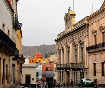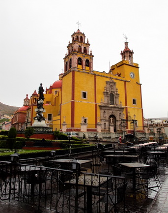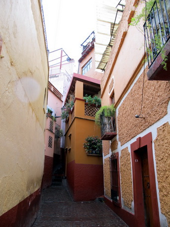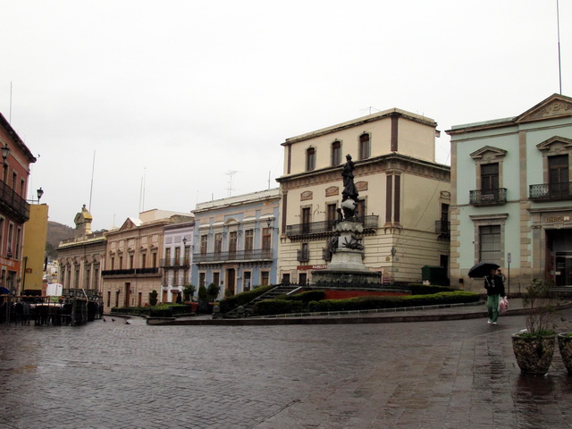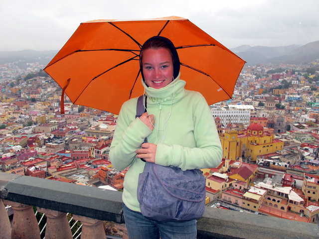 Freitag nacht gings mal wieder zu gewohnter Stunde los, nämlich um 12 uhr nachts, nach Guanajuato…..mit dem Ergebnis das ich schon um 5 Uhr morgens da ankam und erstmal weiter in der zugigen Busbahnhofshalle weitergeschlafen habe….zugedeckt mit meinem Badehandtuch 😉 Hihihi das muss ausgesehn haben! Aber naja, als es dann so alngsam anfing hell zu werden, hab ich mich also um 7.30 uhr auf den Weg zu meinem hostal in der Stadt gemacht! nach 30 minuten walk im strömendem regen bin ich endlich angekommen und hab auch schön ein einzelzimmer bekommen…..was recht vieeeeele ähnlichkeiten mit Harry Potters verschlag unter der Treppe hattte 😛 Aber was solls, ich will ja nur eine nacht da verbringen! Nach einem leckeren Frühstück (irgendwelche Bohnen, die aber nach Kartoffeln geschmeckt haben, voll lecker!!!) gings wieder raus in den Regen, zur Stadtbesichtigung, schließlich gibt’s viel zu sehen.