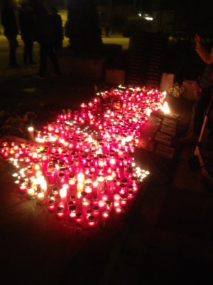 Um der Toten und den Verletzten zu gedenken, wurde dazu aufgerufen eine Kerze auf dem Marmorplatz im Stadtzentrum anzuzünden.