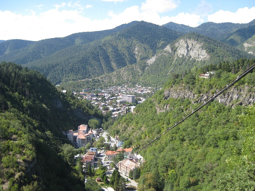 Freitagabend bei einem Bierchen zusammen mit zwei wildfremden Georgiern schnell mal geplant ohne wirkliche, feste Verabredungen. Und trotzdem: Samstagmorgen um 8:35 Uhr werde ich angerufen. Fiona fragt, wo ich denn sei und ob ich in 10min am Freiheitsplatz sein könnte. Denn die beiden Georgier hätten halb neun statt, wie wir meinten, neun Uhr verstanden und würden auf uns warten. Ich hatte mich schon darauf eingestellt, dass außer mir keiner die „Verabredungen“ vom Vorabend ernst nimmt und ich die einzige bin, die sich mühsam aus dem Bett gequält hat. Doch es kam anders. Leicht überrumpelt, hab ich dann noch ein paar Dinge in meinen Rucksack gepackt und bin los. Nikusha und Lasha, der angeboten hatte, uns nach Borjomi zu fahren, kannten wir vom Vorabend, sie waren bei der „Planung“ dabei gewesen, Lashas Cousin Vato kam mit, da er uns sein „Haus“ zur Verfügung gestellt hat. Die drei warteten tatsächlich schon eine Weile mit dem Auto auf Fiona und mich. Wir haben noch kurz einen Stopp zum Proviant-Kaufen gemacht und dann ging es gen Westen raus aus Tbilisi. Während der 2,5 stündigen Fahrt liefen auf voller Lautstärke deutsche Lieder. Lasha konnte fast alle Texte! Und dann der georgische Verkehr…! Lasha fährt gut, aber georgisch: viele waghalsige Überholmanöver, Gehupe, rauchend, scheinbar ohne Verkehrsregeln, der Stärkere darf vor… :D Es war schon ziemlich beeindruckend und die gute Laune war ansteckend! Julian und Paula sind mit der Marshrutka gefahren, da sieben nicht ins Auto gepasst hätten. Gegen halb zwölf haben wir Borjomi erreicht. Das „Haus“ – eher eine Art Schrebergartenhaus oder eine kleine, alte Blockhütte, die an ein Museum erinnerte (ohne dem „Haus“ jetzt zu nahe treten zu wollen, denn es hatte Charme!) – lag recht zentral am Hang. Nachdem wir Julian und Paula aus der Marshrutka eingesammelt hatten, sind wir alle sieben losgewandert. Wir vier Freiwilligen waren eigentlich fest entschlossen, richtig zu wandern, aber die Georgier schienen das Prinzip des Wanderns nicht zu kennen, bestanden aber darauf, uns zu begleiten – georgische Gastfreundschaft… Die Landschaft ist wunderschön! Endlich mal wieder was Grünes! Wir sind entlang eines kleinen Flusses ein Tal hoch gelaufen. Es führte auch eine Seilbahn auf den Berg, an deren Station oben ein super Aussichtspunkt war, von dem aus man das ganze Tal, in dem Borjomi liegt, überblicken konnte. Dort haben wir auf der Terrasse eine (Sonnen-)Pause gemacht. Danach haben wir uns doch getrennt: die Georgier sind mit der Seilbahn runter gefahren und wir sind zurück gewandert. Auf dem Rückweg haben wir uns – da wir ja richtig wandern wollten – für den Advanture Trail entschieden. Dieser war jedoch am Anfang überraschend steil und rutschig, später dann an einer Stelle super matschig (ich hab ein kleines Schlammbad genommen… :D). Der Weg war super schön, aber am Ende war’s echt anstrengend. Verschwitz und dreckig :D haben wir ein kühles Bad in dem „Gebirgs“fluss genommen. Das tat verdammt gut! Angenehm erschöpft, haben wir den Abend mit den Georgiern am Lagerfeuer ausklingen lassen. Da es nur fünf Betten für sieben Leute gab, haben Fiona und ich und Lasha und Nikusha zusammen in einem Bettchen geschlafen :D . Ansatzweise erholt ;-) sind Fiona, Paula, Julian und ich am nächsten Morgen gegen 11 Uhr aufgebrochen. Während wir – dieses Mal im wirklichen Nationalpark – gewandert sind, haben sich die georgischen Jungs einen gemütlichen Tag in Borjomi gemacht (so hatte jeder das, was er wollte). Die Touren im Nationalpark sind alle so lang, dass wir sie nur „anfangen“ konnten. Trotzdem haben wir es bis auf einen Berg geschafft, von wo aus wir einen super Blick über den Nationalpark hatten! Außer uns war da niemand, sodass wir mitten in der märchenhaft schönen, scheinbar unberührten Natur ein kleines Päuschen machen konnten. Die Atmosphäre war so schön, dass wir nicht drum rum kamen, ein paar RosasdanstRosas-Moves aufzunehmen :D . Nach nur gut einer Stunde Rückweg, sind wir wohl behalten wieder in Borjomi angekommen. Auf dem Weg zurück nach Tbilisi waren wir – bis wir Juian an seiner Marshrutka-Haltestelle für Batumi rausgesetzt haben – zu sechst im Auto. Da wir hinten nicht zu viert nebeneinander gepasst haben, lag ich quer über den anderen…! War ziemlich lustig, aber viel länger als die halbe Stunde hätte ich es nicht ausgehalten :D . Gegen acht Uhr abends waren wir dann wieder in Tbilisi. Ein unglaublich lustiges, schönes, ereignisreiches Wochenende!!!