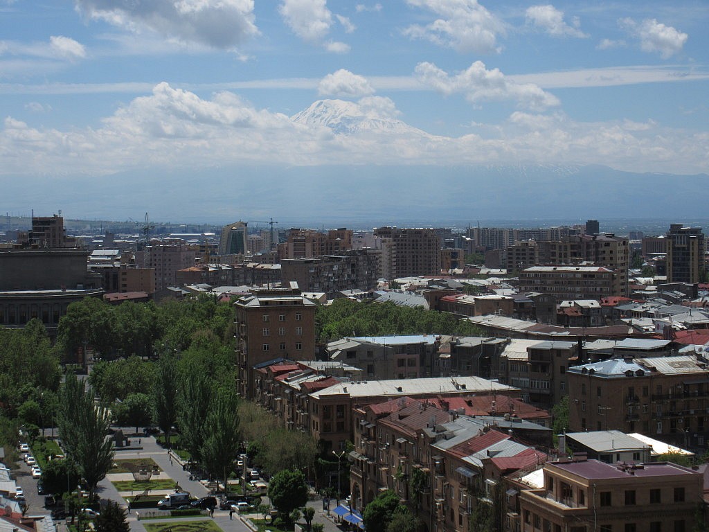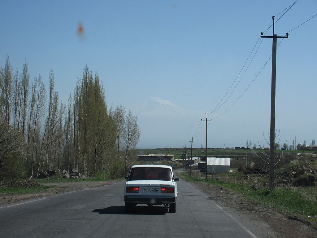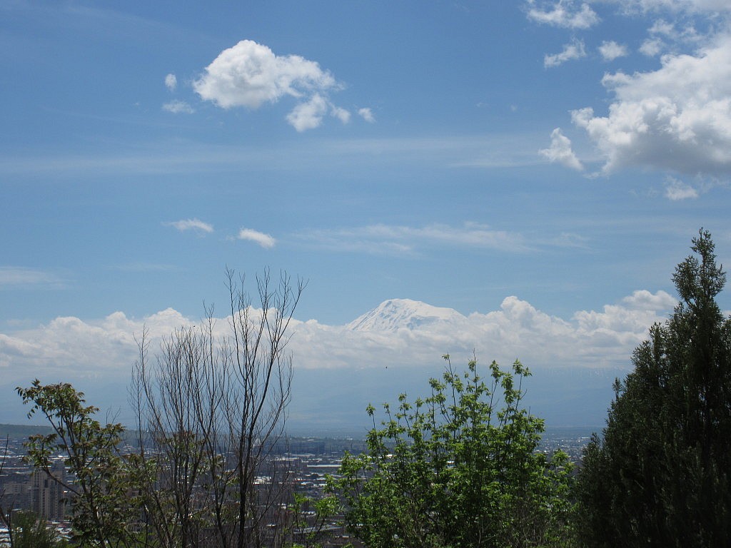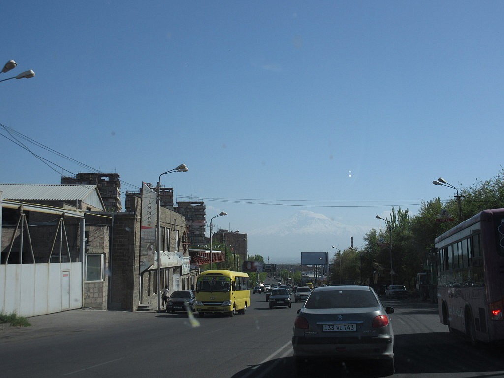 Der Rest der Fahrt verlief problemlos und plötzlich tauchte halb im Dunst und in den Wolken der Ararat, DER BERG auf, den man von ganz Yerevan aus sehen kann, weil er mit seinen 5000m alles überragt, der jedoch bedauerlicherweise auf dem feindlichen Gebiet der Türkei liegt.