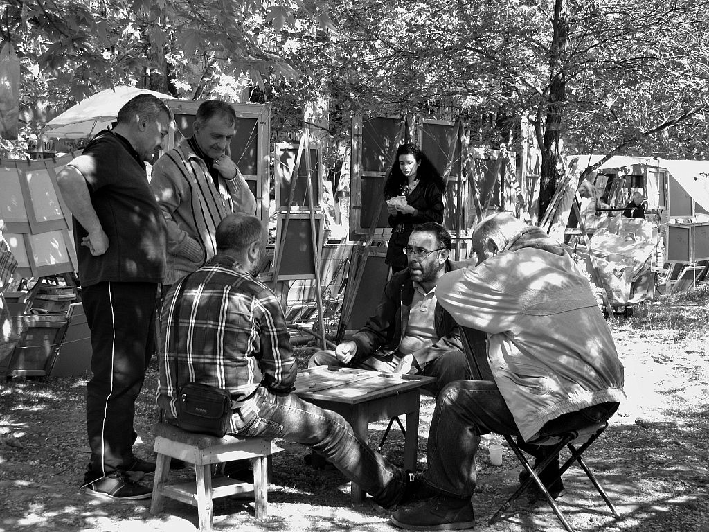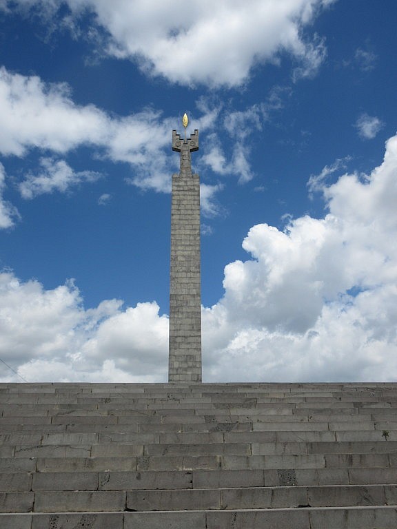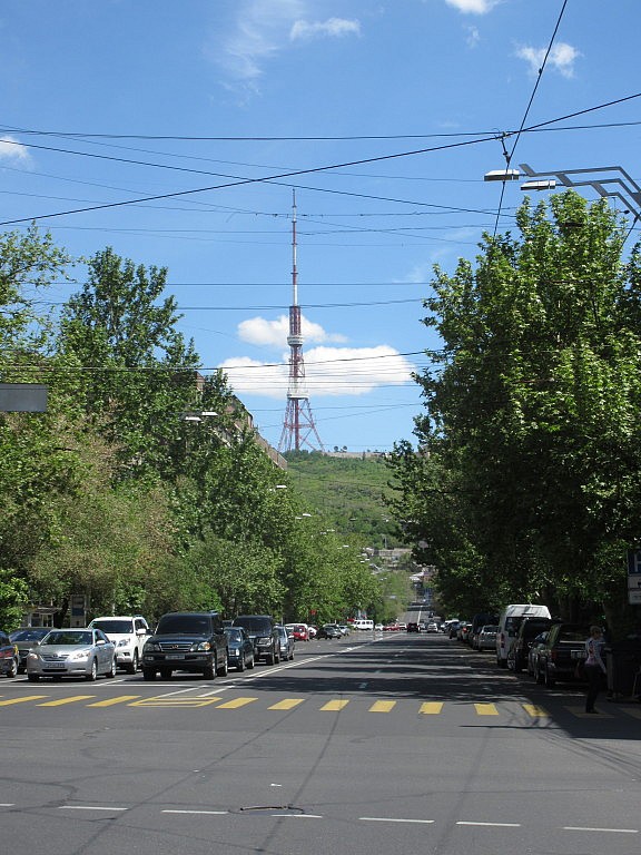 Zuerst waren wir in der Lieblingsbar von allen. Dort war es rappelvoll und die Stimmung war gut. Wir sind dann noch weitergezogen in eine Bar bzw. einen Club. Naja, den Rest des Abends oder besser den restlichen Verlauf der Nacht haben einige am nächsten Morgen zu spüren gekriegt. Wir waren erst gegen halb sechs im Bett, aber mein Mitstreiter und ich hatten ja irgendwie doch noch das Ziel etwas von Yerevan zu sehen. So sind wir dann noch gute vier Stunden durch Yerevan gezogen. Erst sind wir die Kaskaden hoch zur Mutter Armeniens (wie die Mutter Georgiens eine Statue auf einem Berg), sind dann durch die Innenstadt und haben es sogar irgendwie ohne Stadtplan zur Vernissage, einem großen (Kunsthandwerks-)Markt, geschafft. Dort gab es alles! Von bewundernswerter Handwerkskunst (Holzspielbretter, Schmuck, Messer etc.) über Sammlerstücke wie alte Kameras, Briefmarken oder Münzen, aber auch Kabel, alte Lampen und den landestypischen Kognak „Ararat“. Am späten Nachmittag haben wir schließlich unsere Sachen bei Leonie eingesammelt und sind zum Bahnhof, von wo aus unsere Marshrutka zurück nach Tbilisi starten sollte. Eigentlich hatten wir vorgehabt mit dem Nachtzug zu fahren, aber der fährt leider nur an geraden Tagen (02., 04., 06. Mai …), sodass wir uns wieder mit der Marshrutka begnügen mussten. Dort haben wir dann zufällig den anderen Freiwilligen getroffen und sind zu dritt nach Hause gefahren. Nach Mitternacht waren wir schließlich da.
