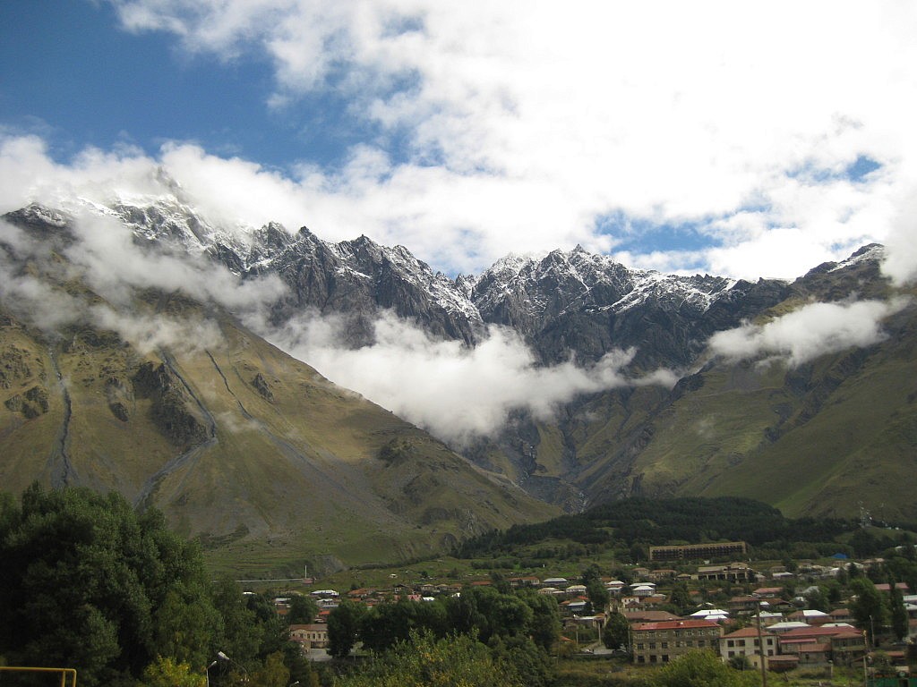 IMG_4684 Veröffentlicht am 1024 × 768 in Ausflug: Kazbegi « Vorheriger Nächster » das Dorf Kazbegi mit dem Gebirgszug des Großen Kaukasus