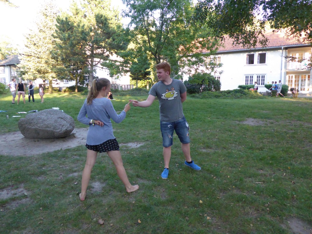 Mein Freiwilligendienst startete offiziell am 1. September zusammen mit 250 anderen Freiwilligen beim Vorbereitungsseminar am Werbellinsee. Über die 10 Tage kann ich leider nicht ausführlich berichten, nur eine kleine Kurzzusammenfassung, wir haben inhaltlich unglaublich viel zum Thema interkulturelle Kompetenz, Diskriminierung und Rassismus, eigene Grenzen, Identität und und und gelernt und gemacht, manchmal aber auch einfach nur Spiele gespielt oder im stillen Raum geschwiegen. Es war super interessant und teilweise auch sehr anstregend. Ich hatte tolle Mitbewohner und Mitmikroblickler(alle Freiwilligen wurden in 12er Gruppen, die sogenannten Mikroblicks eingeteilt), hab die anderen sehr netten Freiwilligen, die sich auch auf den Weg nach Bulgarien machen, kennen gelernt und auch sonst viele tolle Menschen getroffen. Nur eine Anekdote am Rande, als ich am 6. Tag mit zwei anderen Freiwilligen in deren Zimmer saß und geplaudert hab, verirrte sich eine Hornisse in das Zimmer und flog in die Deckenlampe, aus der sie sich nicht alleine befreien konnte. In der halben Stunde Rettungsaktion wechselten die Emotionen zwischen Lachanfall(meinerseits), Hysterie und Verzweifelung. Ich denke in diesem Moment überlegten wir alle ernsthaft wie wir ein halbes bzw. ganzes Jahr im Ausland verbringen sollten, wenn wir schon zu dritt mit einer Hornisse in Deutschland überfordert waren(nicht war Isi und Theresa? :D). Ansonsten verbrachten wir viel Zeit am Werbellinsee, rangen uns sogar einmal früh morgens durch baden zu gehen, und ja, es war zwar schön aber auch bitterkalt, und verdrückten sehr viel Bananen mit Nutella. Den Bericht über das Vorbereitungsseminar schließe ich mit der Frage: „Was ist das für 1 Freiwilliger?“ ab, über die sich viele Menschen Gedanken gemacht haben und bestimmt noch machen werden.