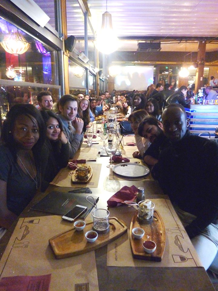 Team Meltingpot hat nun mittlerweile einen eigenen Facebookchat und sich für den Samstag um acht zum Essen gehen verabredet. Zehn Minuten nach acht stehen schon 22 der 36 zugesagten bibbernd vor Torro, einem großen Lokal in der Nähe der Innenstadt. Die Tischreservierung (trotz zweimaliger Nachfrage) muss irgendwie verloren gegangen sein und jetzt sind nur 16 Plätze frei(wie konnte das nur passieren? (diesmal ist eine Klammer in der Klammer nötig, denn für alle die dies nicht verstanden haben möchte ich an dieser Stelle ein imaginäres Ironieschild hochhalten und daran erinnern, dass die deutsche Bürokratie zwar manchmal nervtötend ist, aber man sie auch schnell vermissen kann). Noch ist die Stimmung ist ausgelassen, doch der Hunger und die Kälte fangen langsam an sie ein wenig zu untergraben. Zehn Minuten später sind die meisten eingetroffen, die Mitarbeiter des Restaurants teilen jedoch wieder holt mit, dass ihnen keine Reservierung vorliegt und sie wirklich keinen Platz haben. Nach einer kurzen Guacamolieinlage wird die Entscheidung getroffen einfach wo anders hinzugehen. Als wir uns gerade 25 Minuten nach 8 auf den Weg machen kommt einer der Kellner heraus und meint sie könnten vielleicht ja doch noch irgendwas hin und her rücken. Aaachsooo. Man muss jedoch sagen, dass das Essen sehr lecker war und auch der folgende Abend noch sehr vergnüglich.