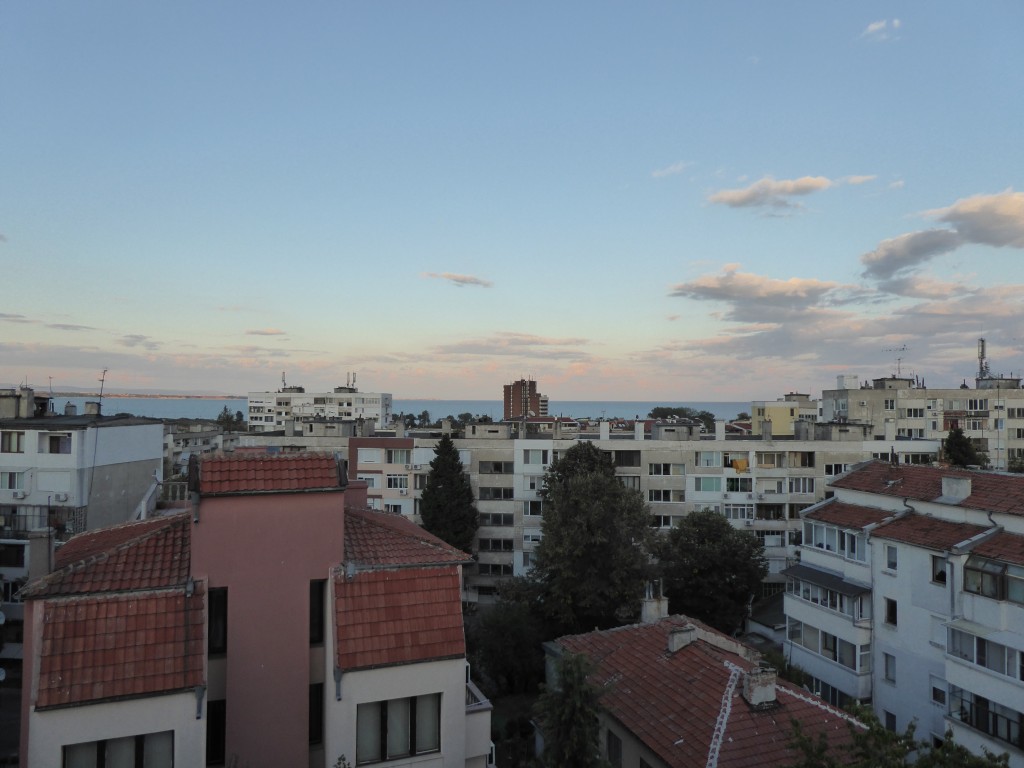 Zurück zu meinen Aktivitäten, da am Donnerstag, den 22.09., bulgarischer Unabhängigkeitstag war, hatten Toni, Seline und Ich überlegt übers lange Wochenende ans Schwarze Meer zufahren. Gesagt, getan, Mittwochabend trafen beide mit dem Bus aus Blagoevgrad und Sofia bei mir ein, damit wir alle zusammen am nächsten Morgen nach Burgas fahren konnten. Die Busse fuhren leider nur um 6:10,6:45 und 14:30 und da die Busfahrt etwa 4h dauern sollte entschlossen wir uns den frühen Bus um 6:45 zu nehmen. Trotz des Entschlusses wurde der Abend mit viel Erzählbedarf lang und die Nacht sehr kurz. Um 6 standen wir in der Dunkelheit und Kälte an der Bushaltestelle vor meiner Schule um den Bus zum Busbahnhof zunehmen. Zwar wurde uns gesagt, dass um 6 Busse fahren würden, doch Dank nicht existierender Buspläne und keiner Garantie für irgendwelche Ankunftszeiten wollten wir ein Taxi rufen. In der Theorie gut, praktisch stellte es sich als schwieriger heraus. Nachdem das erste Taxiunternehmen uns nach dem Satz „Do you speak english?“ einfach weggedrückt hatte verstand die zweite zwar wo wir waren und wo wir hinwollten, aber die Antwort war trotzdem „No Taxi“. Die letzte Option war eine TaxiApp, die total zuverlässig Taxis schicken und den Preis anzeigen sollte, doch als wir die Nachricht „Taxi arrived“ erhielten, war auf der menschenleeren Straße weit und breit kein Taxi zu sehen und so mussten wir uns wohl oder übel nochmal hinlegen und den Bus um 14:30 nehmen. Trotz anfänglicher Startschwierigkeiten unserer Reise erreichten wir gegen Abend Burgas und machten uns zu Fuß auf den Weg zu unserem schon gebuchten Hostel. Auch wenn das Hostel mehr oder weniger unseren Vorstellungen eines Hostels entsprach, unteranderem da das Frühstück vielleicht so ab neun bereit stehen sollte, es eher ein privates Haus war in dem der Besitzer ein Zimmer acht Menschen für die Nacht vermietete und bis abends um 4 noch laut Musik gespielt wurde, der Besitzer einen Tag einfach weg fuhr und uns direkt am Anfang versichert wurde, dass wir uns doch wie Zuhause fühlen sollten, konnte man für den Preis nirgends sonst ein Bett, Dusche, Frühstück und freies Wlan finden. Zusammengefasst war das Wochenende einfach nur entspannt, wir spazierten den Strand entlang, trafen uns abends mit Freunden von Toni und kochten zusammen, schlenderten durch die Fußgängerzone und stöberten durch Buchläden, aßen Cupcorns, das ist warmer Mais in Bechern, meistens mit Parmesan zubereitet, jedoch auch beliebig mit anderen Zutaten wie Schokosoße(wir haben es am zweiten Tag probiert, mein Fall ist es nicht, aber mit Parmesan, mhmm, köstlich!) und ließen auch eine nächtliche zum-ersten-Mal-im-schwarzen-Meer-bade-Aktion nicht aus.