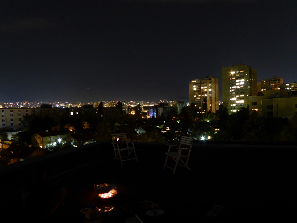 Wiedermal zeigte sich das der Plan sich weit besser anhörte als die Durchführung. Zwar hatten wir einen Grill, nötiges Zubehör und eine wundervolle Aussicht(überkrass!), doch als wir hungrig den Grill anzünden wollten klappte dies mehr schlecht als recht. Eine Packung Streichhölzer, vier verputzte Kräuterbaguettes und eine Packung Schupfnudeln, eine halbe Packung merkwürdig weichen Grillanzünder und vielen verbrannten Klopapierrollen später begann der Grill endlich zu glühen. Da wir aber alle nicht mehr so viel Hunger hatten und auch der Grill sehr lange brauchte diente er letztendlich nur als glühende Heizung auf dem Dach (und leider auch als unfreiwilliger Duftmaschine mit Raucharoma), auf dem wir noch lange Zeit saßen und uns fragten was wohl am nächsten Abend auf uns zu kommen würde.