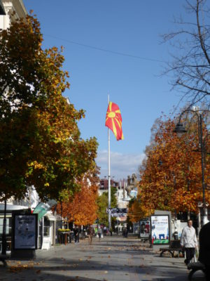 Herbstlicher Straßenanblick in Skopje