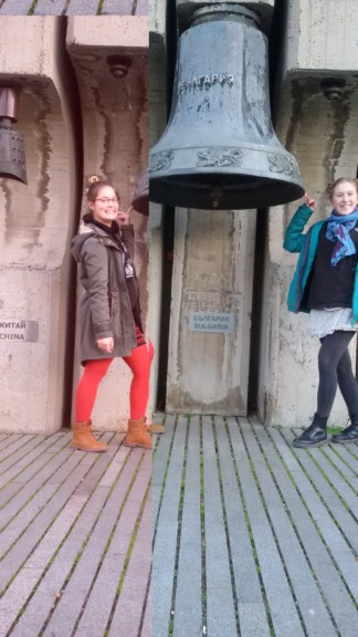 Seline und ich mit der bulgarischen Glocke (meine Güte sind wir stark)