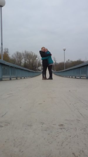 Meine Schwester und Ich auf der Brücke am Ruderkanal
