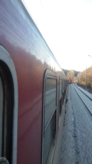 Und jetzt endlich steigen wir aus dem Zug in Craiova aus, einen Bahnsteig gibt es nicht, das Trittbrett des Zuges führt runter auf den vereisten Boden und die nächsten Bahnschienen. Das Zwischenseminar ist vorbei und die ersten beiden Züge von Fagaras nach Bukarest und von Bukarest nach Craiova haben wir schon hinter uns. Uns bleiben 15min um die Fahrkarten für den längsten Teil der Reise zu kaufen, von Craiova nach Bulgarien, laut der Deutschen Bahn soll diese Fahrt 9 Stunden dauern. Wir hasten zum Bahnschalter und versuchen schnell kenntlich zu machen, dass wir 6 Fahrkarten nach Sofia benötigen, doch der Stress ist umsonst. Der Zug kommt eine Stunde später erklären uns die zwei Frauen am Bahnschalter. Das verwirft jetzt zwar unseren tollen Essenszeitplan auf dem für 8 Uhr Abendbrot im Zug notiert war, aber lässt uns genug Zeit den Bahnhofsvorplatz von Craiova zu besichtigen, Geld abzuheben und die Fahrkarten zu kaufen . Auf die Frage ob es Schlafwägen gibt, antwortet die Frau nur, dass man die Tickets dafür extra im Zug kaufen muss, glauben wir zumindest. Um kurz nach 9 abends ertönt die Melodie der Zugansage und der Zug rollt auf das stockdunkle Gleis ein. Erleichtert steigen wir ein und setzen uns in unser zugeschriebenes Abteil. Während wir unser mitgebrachtes Brot und eine Art Suppe, bei der wir dachten, dass es Brotaufstrich wäre kauen ruckelt der Zug einige Meter los, bleibt stehen und fährt wieder zurück. Die Prozedur wiederholt sich zweimal und außer zwei Scherzen („deswegen dauert die Zugfahrt solange“ und „wahrscheinlich hat der Zugführer was vergessen“) schenken wir dem Vorgehen auch keinerlei Beachtung, weil Anne in diesem Moment nachguckt wieviel Strecke der Zug eigentlich zu bewältigen hat, Entfernung Craiova-Sofia, Luftlinie: 187km, Autostrecke: 261km. Ok, stopp, wir fahren 9 Stunden für etwa 250km??? Aber gut, wir wussten worauf wir uns einlassen, dachten wir. Am Abteilfenster läuft ein Mann mit Schlagstock vorbei, aus einem Handy spielt Musik und jeder sucht sich eine bequeme Schlafposition während die Luft im Abteil merklich kälter wird. Auch durch die Winterjacke und drei Schichten kricht allmählich die Kälte. Alle gucken neidisch zu Anja rüber, die eingehüllt in ihrem Schlafsack an der Wand angelehnt sitzt. Nach einiger Zeit steht Seline auf und will den Zug erkunden. Ich breite meine Schaldecke über mir aus (nein, kein Teppich) und Toni zieht die obersten Anziehsachen aus ihrem Wanderrucksack als Seline völlig geschockt zurück in den Wagen kommt: „Das war offen. Da war kein Wagen mehr. Nichts. Abgrund.“ (ich erinnere mich nicht mehr an den genauen Wortlaut, aber das war war der Inhalt.) Und ja richtig, da war nichts. Sie hatten wohl bei ihrer Hinundherfahraktion die Hälfte des Zuges abgekoppelt, die Tür wahr natürlich nicht verschlossen und weil es sowohl im Gang relativ-, als auch draußen stockdunkel war konnte Seline nicht sehen das dort vor der Tür nichts war außer schnell (wie mans nimmt, aber schnell genug um super gruselig zu sein) vorbeiziehende Gleise. Geschockt stehe ich 5 min später mit Johanna vor der Öffnung. Wir entschließen uns mit Anne in die andere Hälfte des Zuges zu gehen und nach die Schlafabteile zu suchen. Im zweiten Wagen hören wir plötzlich hinter uns Geräusche (wohlbemerkt in einem dunklen Gang in einem, wie es fast scheint, ausgestorbenen Zug). Es ist ein kleiner zur Glatze neigender beleibter Mann, der uns freundlich anlächelt und die Sprachen Rumänisch, Bulgarisch (einzelne Wörter verständlich), Englisch und sogar Deutsch durchprobiert und uns dann ich deutsch mal eben im Nebensatz mitteilte, dass unser Zug vier Stunden Verspätung hat. Johanna und ich bekommen einen leicht hysterischen Lachanfall, es fühlt sich alles einfach nur ein bisschen absurd an. Allerdings können wir danach für einen kleinen Aufpreis in zwei Schlafwägen umziehen, was die Fahrt definitv komfortabler und wärmer macht. Nach der Grenzkontrolle können wir auch endlich richtig schlafen. Der Schaffner ist super bemüht, bringt uns Decken und am nächsten Morgen Schokocrossaints und Wasser. Als wir 14 Stunden später aus dem Zug aussteigen sind wir erleichtert, aber auch froh es gemacht zu haben. Ich persönlich fand es definitv spannender und auch angenehmer als Bus fahren, aber ich muss sagen, dass ich definitv davon abraten würde alleine über Nacht Zug zu fahren. So richtig vertrauenserweckend sah der Mann mit einem riesigen Hammer in der Hand, der durch den Zug gegangen ist, nicht aus. Aber jetzt kann ich Zug fahren auch von meiner Liste abhacken und wenn ich nochmal Zeit und Mitfahrer habe es sehr gerne wiederholen.