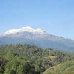 Der Popcatepetl ist mit über 5.000 Metern Höhe der höchste Berg Mexikos. Sein Name ist Programm, er bedeutet in etwa ‚rauchender Berg‘. Unaufhörlich stößt er Rauch aus und wirkt dadurch wie eine ständige Bedrohung für die Stadt und ihre Einwohner. Sein Anblick fasziniert mich. Neben ihm ruht Iztaccíhuatl, die ‚weiße Frau‘. Auch ihr Name ist Programm. Der Bergrücken dieses inaktiven Vulkans hat die Form einer auf dem Rücken schlafenden Frau. Sie ist nahezu das ganze Jahr über in eine Schneedecke gehüllt.