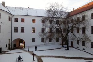 Auf Empfehlung von Sandra, Kulturmanagerin im Lenau-Haus, setzten Peter, Greta und ich uns am Samstag in den Bus nach Siklós. Siklós ist eine kleine Stadt, 31 km südlich vom Pécs, am Südhang des Villány-Gebirges. Besonders bekannt ist die Stadt für die sehr gut erhaltene Burg, die einen einmal durch die gesamte Architekturgeschichte führt, von der Romanik bis zum Barock. Wer Lust hat, sich ein wenig wie ein*e Ritter*in zu fühlen, der sollte da auf jeden Fall mal vorbeischauen. Für die etwas härteren Gemüter gibt es auch eine Ausstellung über Folterwerkzeuge, die anderen können sich den Rosengarten (okay, im Winter nicht allzu spannend) oder Gemälde anschauen.