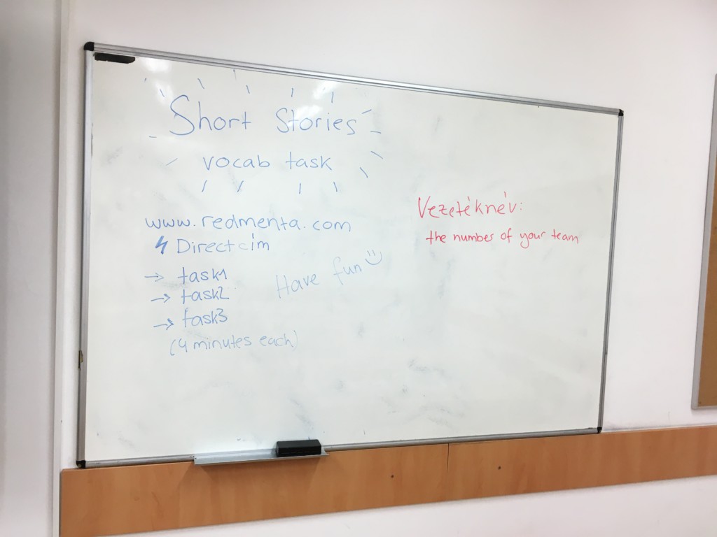 So der Anfang der Kurzgeschichte „The Lottery“ von Shirley Jackson (1948). Diese und zwei weitere weitere Kurzgeschichten (‚The City‘ von Ray Bradbury und ‚The Open Window‘ von Saki) waren Gegenstand der Short Story Competition am Babits, organisiert von der Englischfachschaft. Alle drei sind sehr spannend und unbedingt lesenswert! In verschiedenen Stationen wurden den Teilnehmenden ganz vielfältige Aufgaben gestellt – von „Creative writing“ bis zum Erstellen eines Trailers. Eine Station betreuten mein Kollege Sándor und ich: den ‚Vocab Task‘. Um das ganze möglichst interessant zu gestalten (und gleichzeitig organisatorisch machbar), entschieden wir uns die Aufgabe online bearbeiten zu lassen, auf der ungarischen Lernplattform „redmenta“ (die Aufgaben sind öffentlich, falls sich jemand probieren möchte 🙂 )