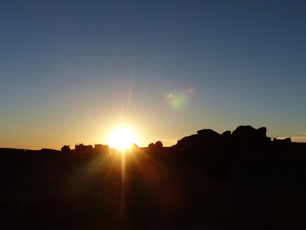 Sobald man vor die Jurte tritt, sieht man dann nichts außer Land um sich herum. Vielleicht noch ein paar Ziegen oder Schafe, aber das wars. Noch viel besser ist allerdings die Ruhe. Wenn man ein paar Schritte läuft und dann die Augen schließt, herscht, vom Wind und dem eigenen Atem abgesehen, Stille. Gerade bei dem Hupkonzert und den offensichtlich Tag und Nacht arbeitenden Bauarbeitern in UB eine Erholung, die wie gerufen kommt.