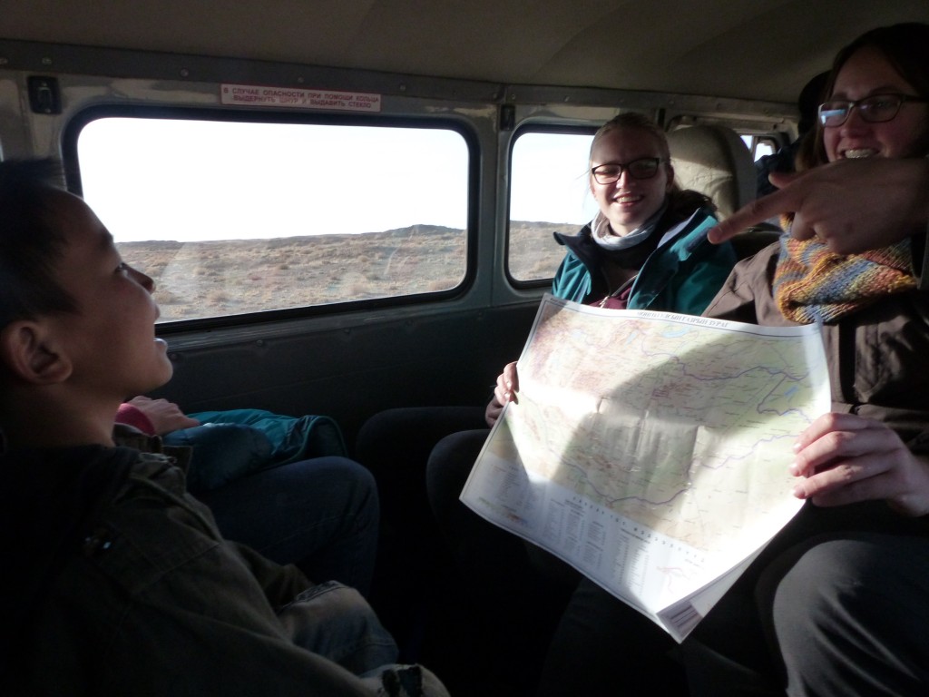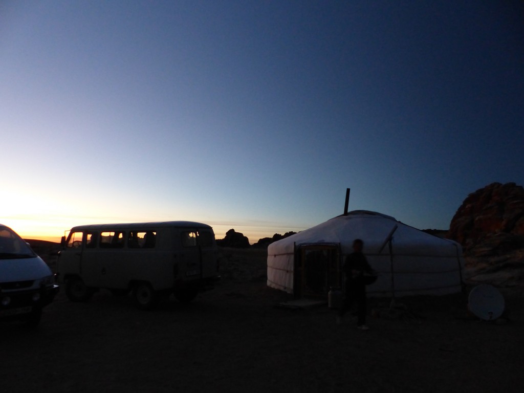 1 Woche Schulferien – eindeutig die Chance, nun endlich mal mehr von der Mongolei zu sehen als nur die Hauptstadt. Das Ziel war schnell gefunden. Und so startete am 31.10 um 9:00 Uhr unsere Tour in die Wüste Gobi mit eben benanntem Russenbus plus einem weiteren Auto.Einmal raus aus der Stadt, back to the roots. Nachdem wir anfangs nur die Smogwolken hinter uns ließen, ging es dann auch bald ab von geteerten Straßen und ständiger Erreichbarkeit in Richtung simple life.