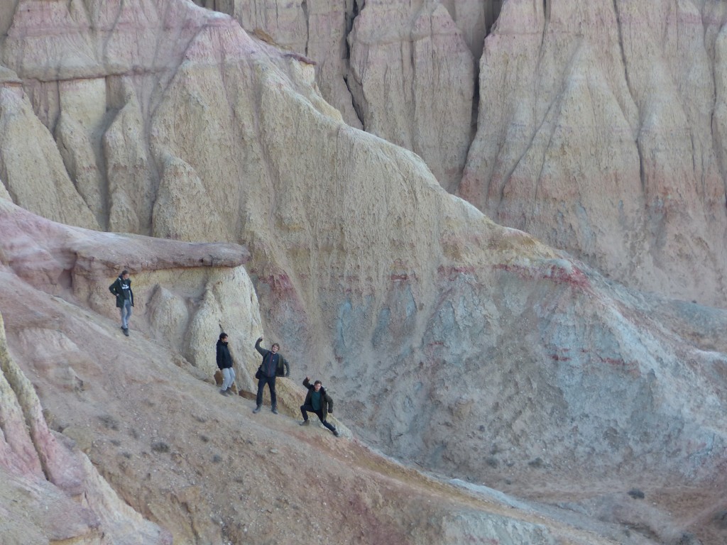 Nachdem wir also Big Tasty Bacon Burger und seidig sanfte Säbelzahntiger in unseren Koffer gepackt hatten und ich wegen meinem Dialekt mein Fett wegbekommen hatte, waren wir dann auch schon an den Ulaan Ereg, den roten Klippen. Dort wurden 1922 fast 100 Saurierüberreste aus der Kreidezeit gefunden. Nachdem wir die roten Klippen zu Genüge bewundert und beklettert hatten, machten wir uns auf zu der Familie von Naraa, einem unserer Fahrer. Dort wurden wir ganz in der Tradition der mongolischen Gastfreundlichkeit auf Suutei Tsai (Milchtee), Airag (vergorene Stutenmilch) , Aruul (getrockneter Quark) und Fleisch eingeladen.