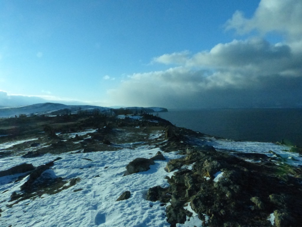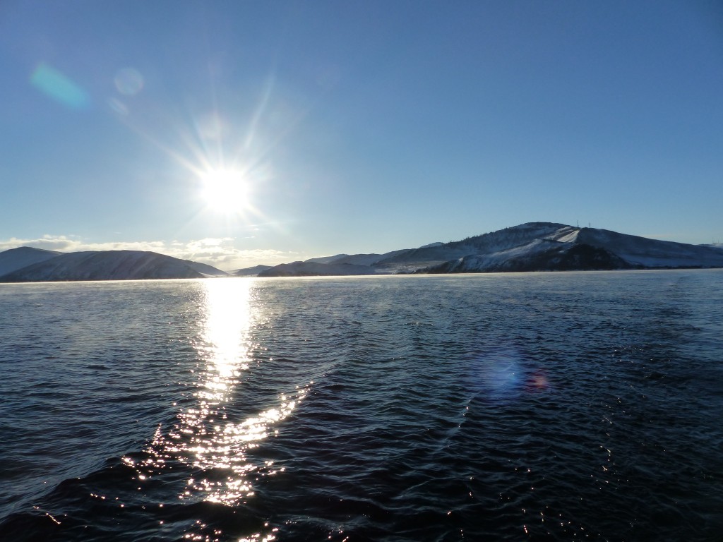 Nach einem schönen Abend in Irkutsk, einem kleinen Stadtrundgang mit halb erfrorenen Füßen und mehr oder weniger gravierenden Blessuren von asiatischen Kartenspielen ging es am 24.12. mit dem Bus weiter nach Orkhon Island, einer kleinen Insel im Baikalsee.Mit Regina, eine auch gerade in UB lebende Hongkong Chinesin, haben wir dann die Busfahrt über viel gequatscht und koreanisches Essen gegessen. Wobei ich meinen Gefallen an getrocknetem Fisch und getrockneten Tintenfischstreifen gefunden habe