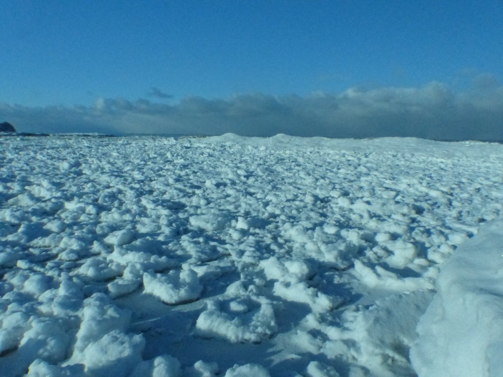 Nach dem Stapfen durch den tief verschneiten Wald wärmten wir uns dann bei einem kleinem Vesper am warmen Feuer. Ich, die es zu gut meinte mit Füßen wärmen, kokelte mir dann gleich mal die Socke an. Immerhin waren die Füße danach warm und es konnte weitergehen. Mit den Bussen ging es über einen gefrorenen See auf der Insel und dann ein Stück hoch, wo man einen fantastischen Blick über den Baikalsee hatte…mit dem See so vor einem fühlt man sich auf einmal so unglaublich klein. Aber seht selbst.