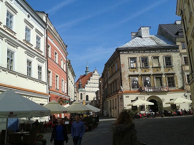 Über den Verkaufständen an den Wänden waren die Wappen der verschiedensten polnischen Städte angemalt. Natürlich haben wir das Lublin-Wappen gesucht – und auch gefunden. Gekauft habe ich mir nichts, aber alleine das Anschauen hat sich gelohnt.