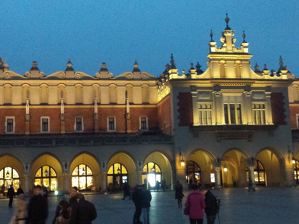 Hier haben wir die Tuchhallen. Einmal in der Abenddämmerung und dann noch bei Tageslicht. In den Tuchhallen haben die Verkäufer ihre Stände gehabt und so ist es immer noch. Alles voller Stände und voller Leute, die die angebotenen Waren begutachten.