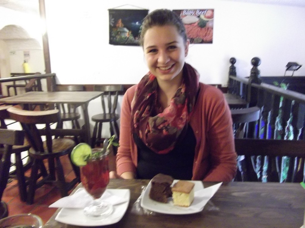 Im Zentrum hab ich mich dann mit Annika getroffen und wir sind zusammen ins Museo del Oro 🙂 es war echt interessant! Danach sind wir noch zum Plaza Bolivar und in ein kleines Restaurant in der Nähe, wo es typisches kolumbianisches Essen gab und haben Aromatica mit Brombeeren getrunken und Schokikuchen gegessen :).