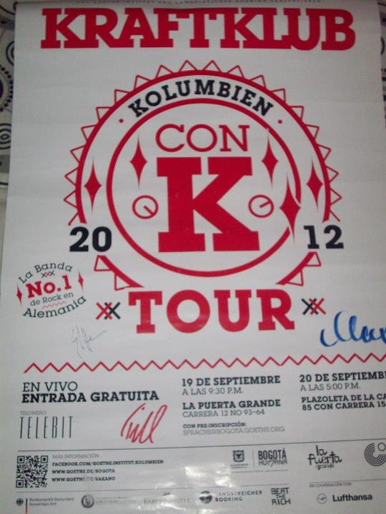 Also jetzt zum Update 😀 Gestern war hier in Bogotá ein Konzert von Kraftklub 🙂 und ich bin mit ein paar Schülern, Catherine ( die Deutschlehrerin an meiner Schule) und ihren Kindern und Annika gestern Abend dann dort hin. Es war auch ein kleines kulturweit-Treffen 😀 weil wir alle 6 Kulturweitfreiwilligen gestern Abend dort waren. Vor dem Konzert haben wir sogar noch ein bisschen mit dem Schlagzeuger der Band geredet und ein Foto gemacht ;). Das Konzert war echt toll!! Aber ich war erstaunt wie viel Deutsch hier in Bogotá sind 😀 da waren echt ganz schön viele!! Danach sind wir noch Pizza essen gegangen, wobei ich davor eine Wette abgeschlossen hab, dass kolumbianische Pizza ganz sicher nicht besser ist als deutsche. Und ganz ehrlich gesagt, ich bin mir sehr sicher, die Wette hab ich gewonnen :D!