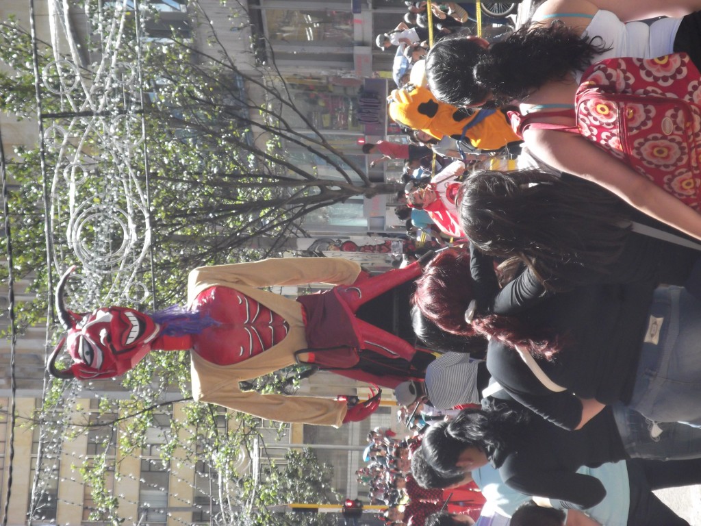 Halloween feiert man hier nicht wie in Deutschland nur am 31. sondern eine ganze Woche über 😀 das heißt dieses Wochenende schon. Außerde, verkleidet man sich hier nicht nur als Hexe oder Vampir, sonder von Fee über Clown und Zoro bis hin zu Prinzessin ist alles vertreten ;). Halloween ist hier außerdem auch nicht nur eine Feier für kleine Kinder, sonder alle gehen hier eigentlich auf Halloween-Partys verkleidet und so weiter. Gestern schon, als ich ins Einkaufszentrum bin, saß ich an der Bushaltestell also zum Beispiel neben einer kleinen Fee und im gleichen Moment läuft ein Spiderman und ein Schneewittchen gerade über die Straße :D. Und auch heute, als ich ins Zentrum gefahren bin, ist der Bus irgendwann nicht mehr weitergefahren und ich musste aussteigen und laufen. Nach ein paar hundert Metern musste ich dann feststellen, dass die Linier gesperrt war, weil es auf der Hauptstrasse eine Art Faschingsumzug gab. Also zumindest in Deutschland würde man das so bezeichnen, hier ist es Halloween…