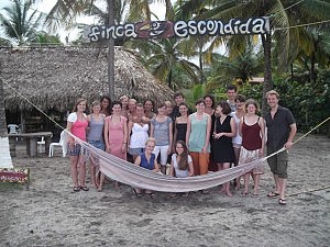 Aber auch sonst hatten wir natürlich sehr viel Spaß und die 5 Tage vergingen beinah viel zu schnell! Am Freitag hat sich dann die Gruppe wieder getrennt und ich bin mit 5 anderen Freiwilligen, Saskia, Ferenc, Tine, Franzi und Annika in ein Hostel in der Nähe des Nationalparks Tayrona gefahren. Am nächsten Tag sind wir dann von dort aus ( einem der wohl schönsten Hostel überhaupt!) Richtung Park gefahren. Im Park sind wir dann ersteinmal gewandert, durch Dschungel und Palmenwald, aber auch barfuss am Meer entlang 🙂 ungefähr 3 oder 4 Stunden bis wir dann das Ziel erreicht haben, an dem alle ausser Annika und mir dann auch übernachtet haben ( weil wir leider am nächsten morgen zum Flughafen mussten…). Eigentlich war der Plan dass wir dann gleich wieder zurücklaufen, aber wir waren schon auf dem Weg, da hat uns jemand angeboten mit dem Boot zu fahren, das war uns aber eigentlich zu teuer, aber er hat mit sich verhandeln lassen udn so sind wir dann mit dem Bootg zurück nach Santa Marta gefahren. Die Fahrt war toll!! Und auch so hatten wir vorherh noch Zeit die wir dann mit den anderen am wunderschönen türkisblauen Karibikstrand verbracht haben!