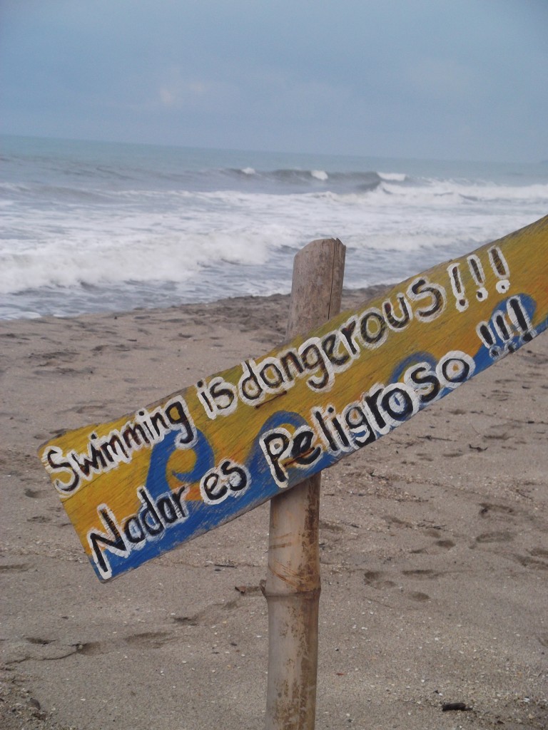 Nachdem wir dann am Sonntag noch ein paar Strandutensilien wie Sonnenbrille und Flip Flops gekauft haben, sind wir dann auch schon Richtung Bus gelaufen. Mit 10 Kilo Rucksack sind wir also losgelaufen, allerdings einmal im Kreis 😀 weil wir den Weg nicht gleich gefunden haben ;). Mit dem Bus gings dann nach Palomino, einem kleinen Dörfchen ca. 2 Stunden entfernt von Santa Marta. Vom Dorf aus war es aber nochmal ein Stück bis zur Finca, die direkt am Strand lag, und so sind wir dann jeder auf einem Mototaxi runter zum Strand gefahren. Selbstverständlich ohne Helm, allerdings mit ordentlich Geschwindigkeit und zum Teil über alles andere als befestigte Wege. Aber man muss zugeben, es macht echt Spaß 🙂 auch wenn es nicht ganz so einfach ist sich dabei mit 10 Kilo auf dem rücken dann auch noch am Motorrad festzuhalten 😀 aber es hat funktioniert!