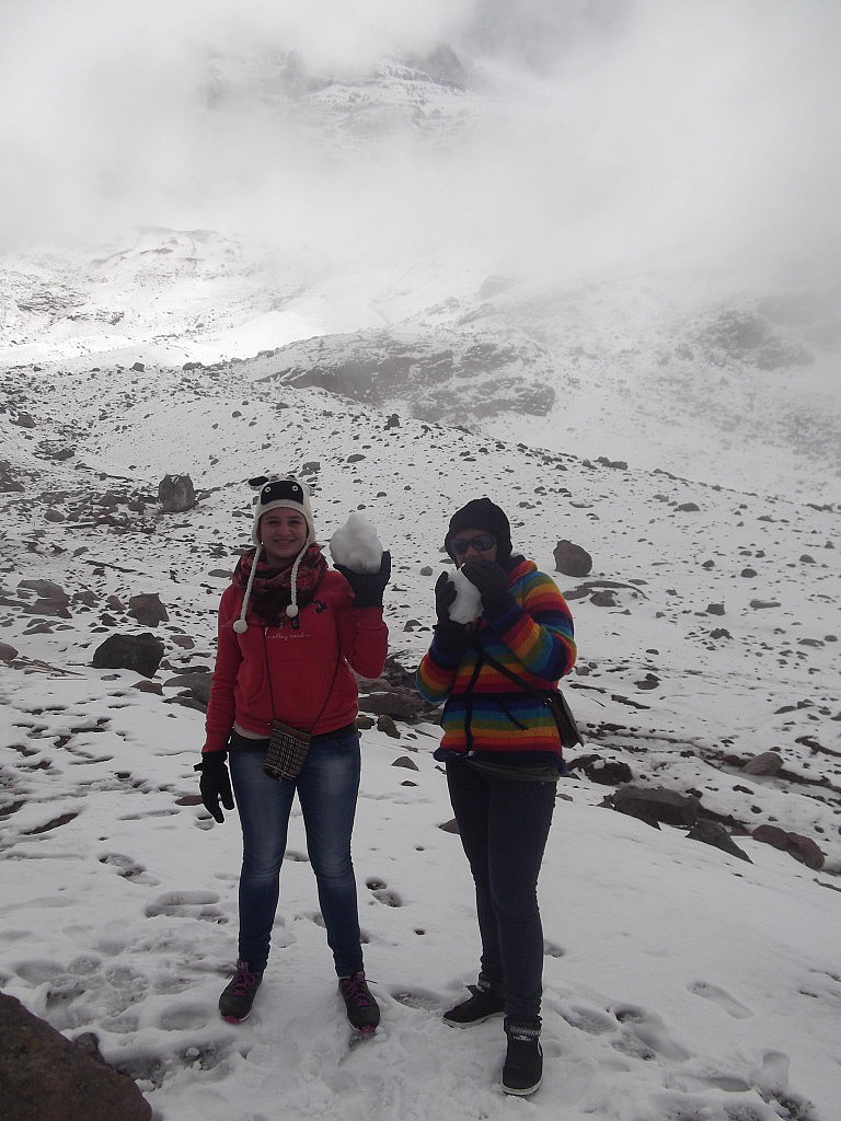 Nach Banos dann weiter nach Riobamba, unserer letzten Reisestation :). Hier habe ich mich mit Silke getroffe, was auch sehr schön war 🙂 und am nächsten Tag sind Lina und ich auf den Chimborazo, den höchsten Berg Ecuadors ( und wenn man vom Erdkern aus rechnte, sogar der höchste der Welt!!) mit einer kleinen Reisegruppe. Es war so beeindruckend! Nach dem Aklimatisieren auf der ersten Hütte und einer Tasse Coca-Tee gegen Höhenprobleme, sind wir bis auf 5000 Meter hoch gelaufen ( war aber nicht so weit 😉 ), nochmal Coca-Tee, gaaaanz viele Bilder vom vielen Schnee 🙂 und dann wieder Abstieg. Ein sehr gelungener Reiseabschluss !