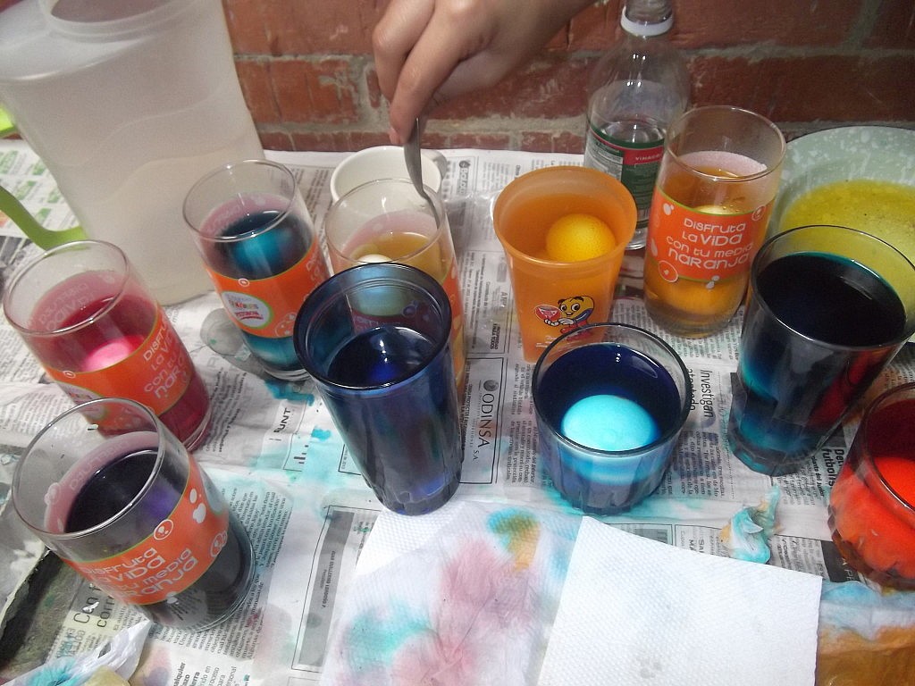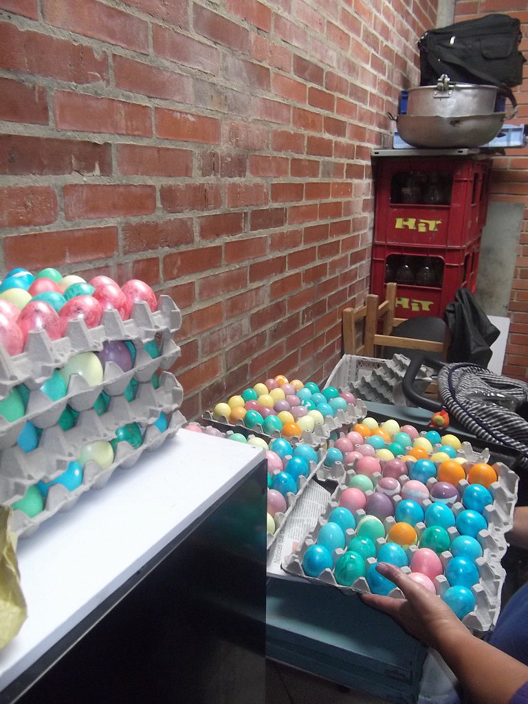 …ist sicherlich NICHT mein Traumberuf :D. Die vier Stunden Eier färben heute in der Schule haben mit gereicht ;). Morgen werden ein paar Klassen der Grundschule auf Ostereier suche gehen und da muss sich ja auch jemand finden der die Ostereier schön bunt bemalt. Eigentlich sollte das die Cafeteria übernehmen, der Haken bei der Sache: man hat uns originale Farbe zum Eierfärben aus Deutschland zukommen lassen und das heisst ich musste zuerst die Anleitung übersetzen und hab dann auch gleich beim Anmalen geholfen, da ich ja mit den Eierfarben schon ein bisschen Erfahrung hab ;). Bei den ersten hundert Eiern hat es ja auch wirklich noch Spaß gemacht 🙂 ich glaub ich habe schon ewig keine Ostereier mehr bemalt! Aber irgendwann ist es dann eher anstrengend, wohlgemerkt wir mussten 300 Eier bemalen!!!! Das waren eindeutig ein paar zu viele, wir konnten auch erst um 12 anfangen, das heisst am Ende war ich dann fast 2 Stunden länger in der Schule als normalerweise, aber ich bin ehrlich gesagt auch schon ein kleines bisschen früher gegangen, bei Ei Nummer 295 hab ich gedacht dass sie das auch alleine noch fertig bekommen und bin ganz schnell zum Bus, weil es sehr stark nach Regen aussah und ich wiedereinmal meinen Regenschirm vergessen habe :/ ( und die vermutung hat sich dann auch bestätigt :/ aber ich habs noch rechtzeitig nach Hause geschafft 🙂 ).