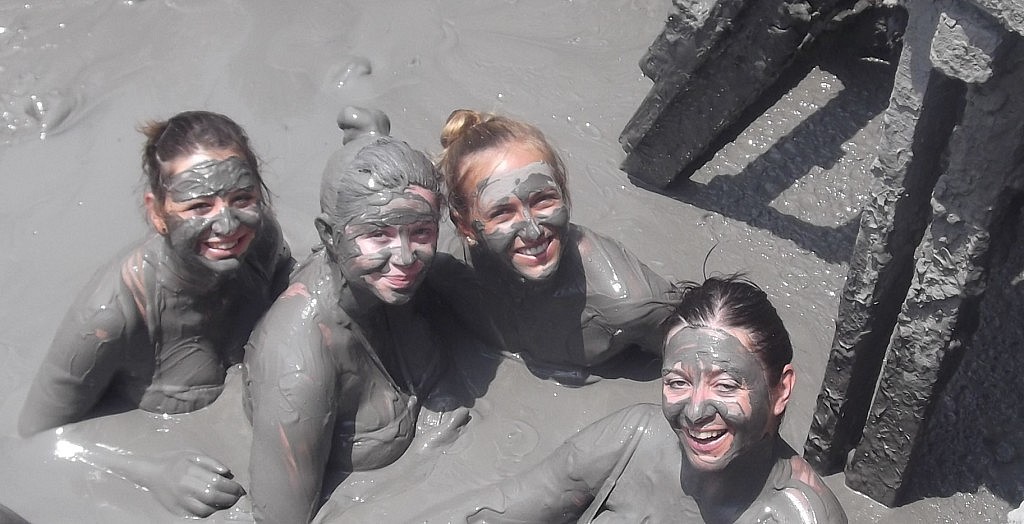 Also früh ins Bett, um am nächsten Morgen wieder fit zu sein, denn an diesem Tag ging es zu einem Ort an dem es eine Art Schlamm-Vulkan gibt. Das heißt man kann sich im Krater dort in Schlamm baden. Abgesehen vom kleinen Krater und der langen wartenden Menschenschlange war es aber wirklich toll! Richtig witzig ist es, wenn man versucht sich im Schlamm vorwärts zu bewege n 😀 denn man treibt im Schlamm und kann sich irgendwie nur schwer fortbewegen… und den ganzen Schlamm dann wieder los zu werden ist auch alles andere als einfach 😀 noch am Tag danach hatten wir Schlamm in den Ohren und so :D. Vom Vulkan aus sind wir dann noch in einen Ort vor Cartagena gefahren, mit der Reisegruppe, wo wir typisch Mittaggegessen haben ( direkt am Meer) und typisch heißt, wieder genauso wie am Tag zuvor 😉 exakt das gleiche, nicht wirklich abwechslungsreich aber eben kolumbianisch 😉