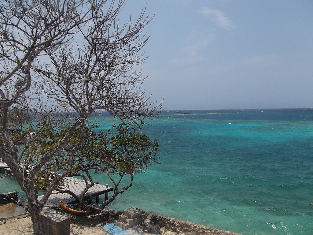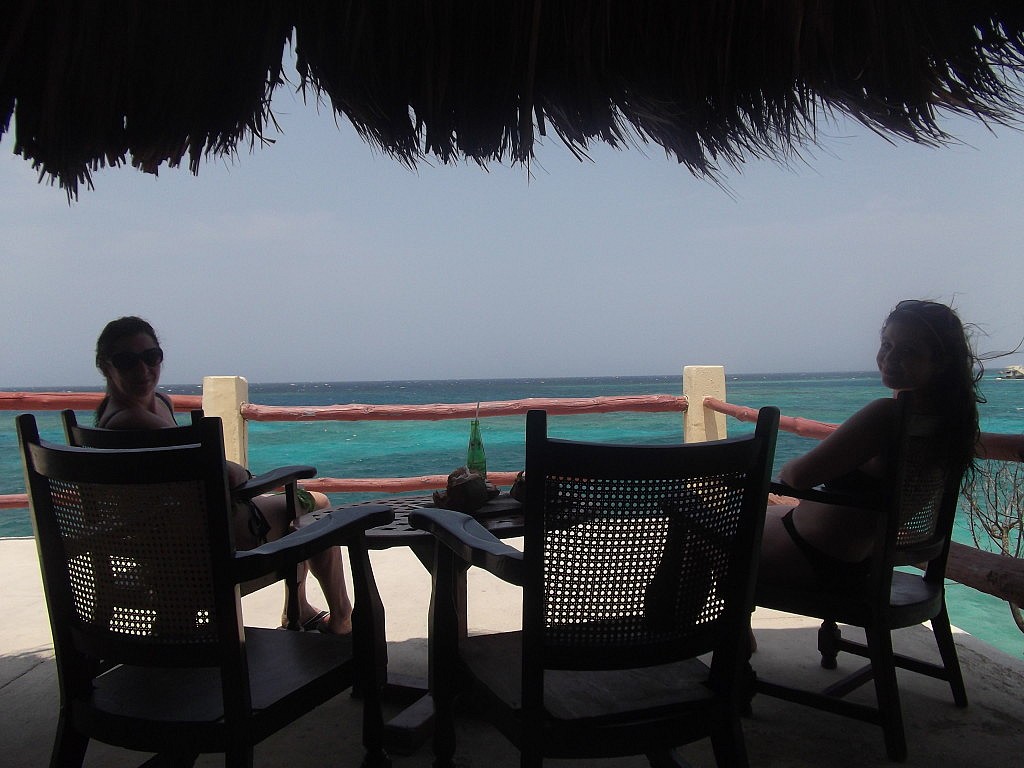 Am nächsten Tag begann dann aber unser Hardcore-Touristen Programm 🙂 mit dem Boot sind wir morgends früh auf eine Insel außerhalb Cartagenas gefahren. Der Strand in der Stadt selbst ist ja nicht wirklich schön, aber auf der Insel war es wirklich toll :)! Super schönes, türkisblaues und klares Meer! Dort haben wir dann den ganzen Tag entweder im Wasser oder auf dem Liegestuhl unter Kokospalmen verbracht. Außerdem war in unserer Tour auch ein leckeres Mittagessen mit typischen Fisch, Patacones/ grüne, unreife Bananen frittiert, Kokosreis und leckere Wassermelone und Ananas 🙂