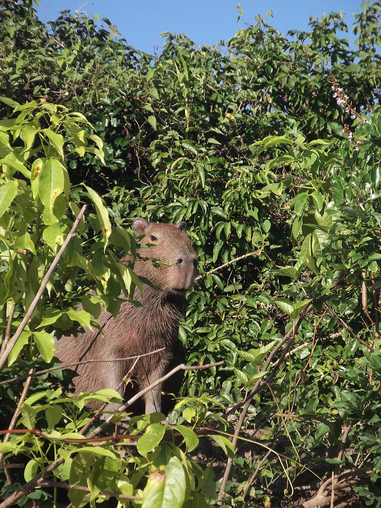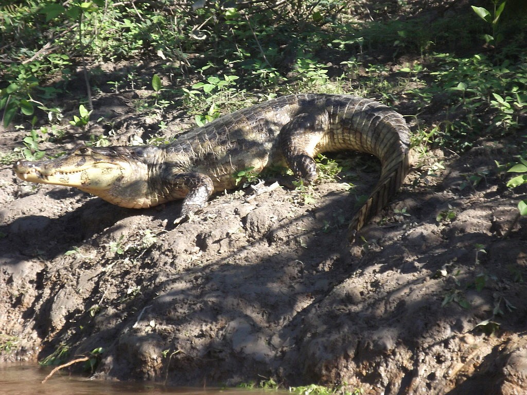 Für mich hiess es dann erst einmal so schnell wie möclich duschen und frische Kleider anziehen! Nach 3 Tagen ohen Dusche und durch den Matsch stampfen war das einfach überfällig! Nichtsdestotrotz hab ich mich dann am nächsten Tag wieder aufgemacht in die Pampa, gemeinsam mit einer Gruppe Franzosen ( kleine Kommunikationsschwierigkeiten 😉 hab alles verstanden aber hätte ich Französisch gesprochen wär das eher ein Franz-Spanisch Mix geworden :D). Der Weg dahin war furchtbar! Wir haben 4 Stunden gebraucht im Jeep und die Strasse war natürlcih auch nicht asphaltiert und mit rießen Schlaglöchern! Von da aus gings dann wieder im Boot in der prallen Sonne weiter bis zum Camp. Auf dem Weg gabs Äffchen, Kaimane, Alligatoren, Schildkröten, Paradiesvögel und andere Vögel zu betrachten 🙂 und nahc dem Abendessen sind wir nochmal aufs Wasser um wieder Kaimane und Alligatoren bei nacht bei der Jags zu erwischen. Und ich hab dort den schönsten Sternenhimmel überhaupt gesehen!!!! Das war der Wahnsinn!