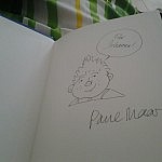 Und ich konnte noch einen gezeichneten Herrn Taschenbier abstauben, der jetzt an meiner Zimmertür hängt und mein Zimmer nicht mehr ganz so kahl erscheinen lässt.