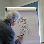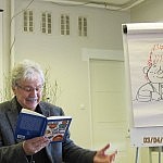 Als es dann enlich losgeht wurde den kleinen und großen Kinder die Charakterwelt in Paul Maars Büchern vorgestellt. So entstanden in kürzester Zeit der tätowierte Hund oder Herr Taschenbier auf Papier. Später wurden alle in die Welt des Sams entführt – natürlich auf Estnisch. Da es „Eine Woche voller Samstage“ jetzt eben auch auf Estnisch gibt. Paul Maar blickte hier nur immer mal verwirrt auf… Ist das wirklich mein Buch, was da gelesen wird? Aber als die Kinder dann zwischendurch mal gelacht haben, schien er irgendwie erleichtert.
